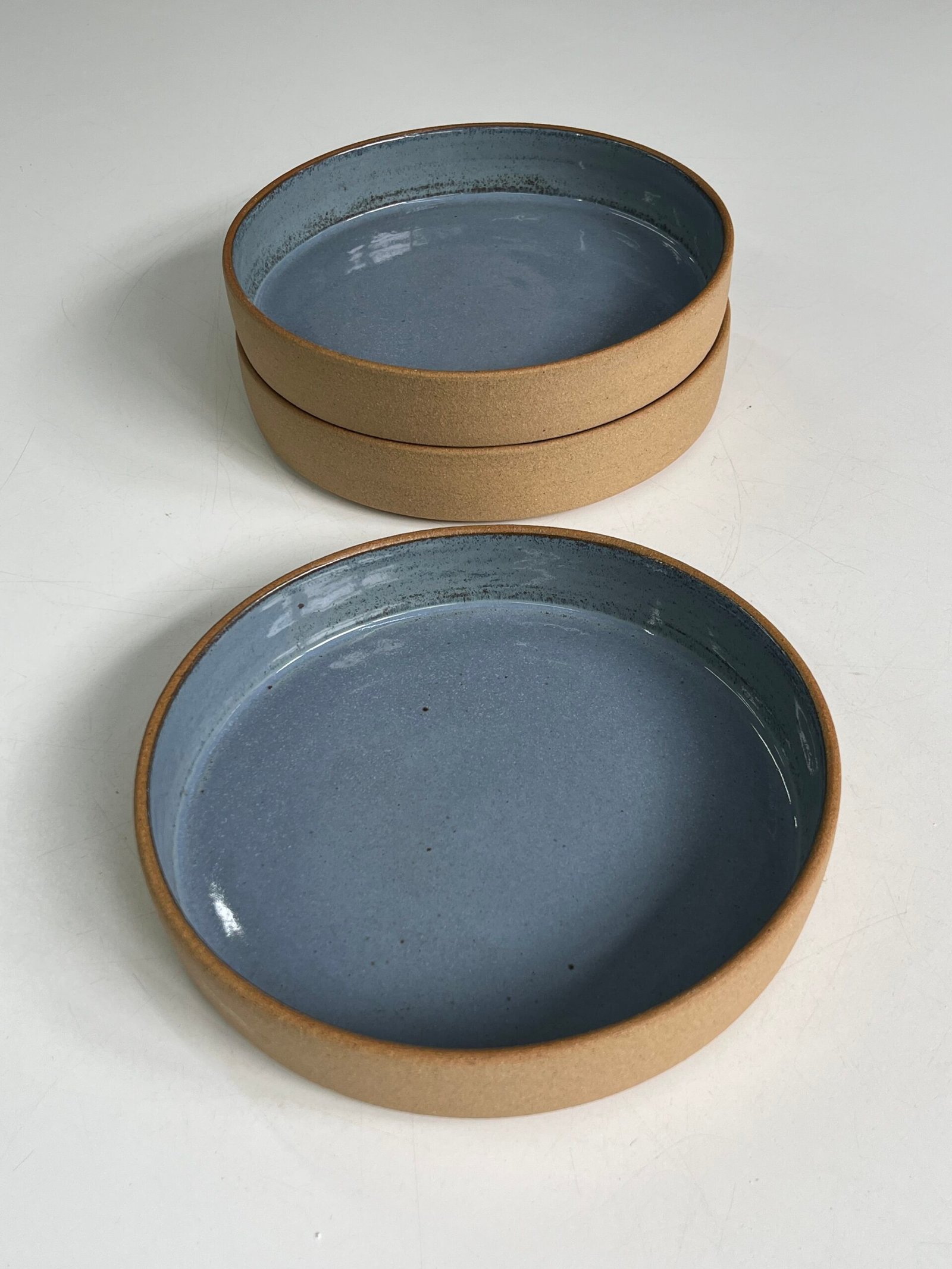 Peças modeladas em torno elétrico, produzidas com argila e esmaltes para alta temperatura.
