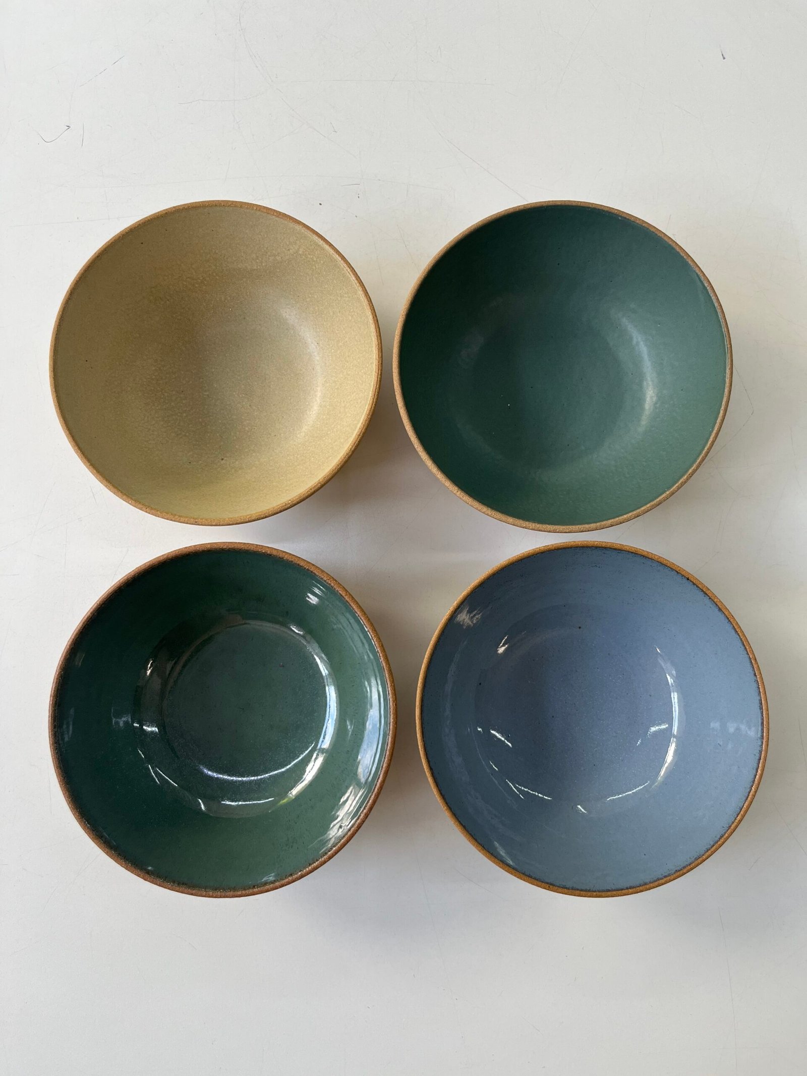Peças modeladas em torno elétrico, produzidas com argila e esmaltes para alta temperatura.
