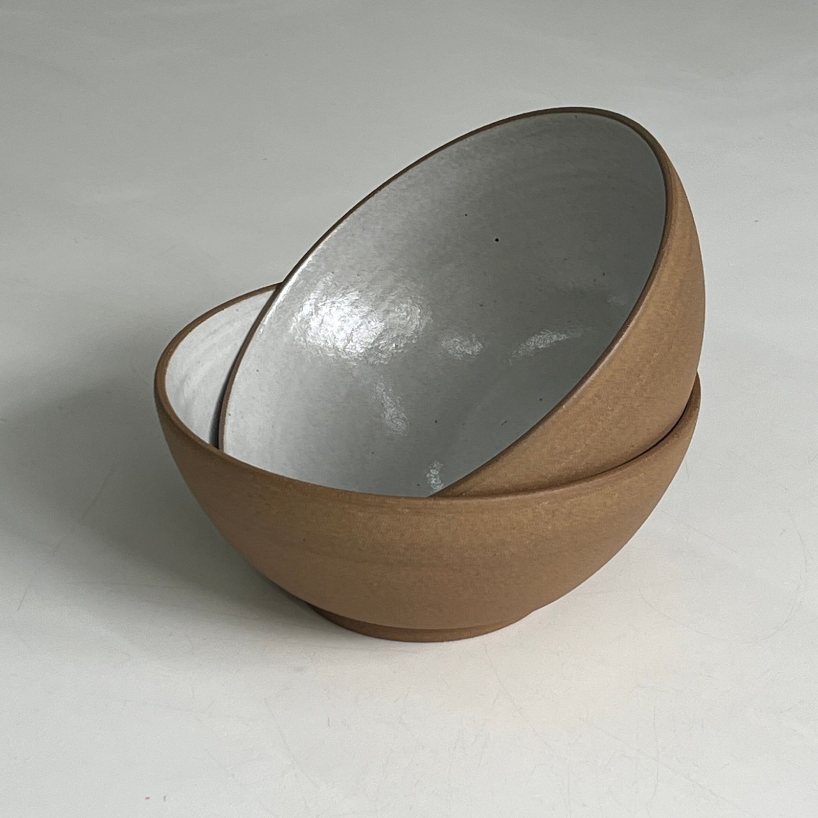 Peças modeladas em torno elétrico, produzidas com argila e esmaltes para alta temperatura.