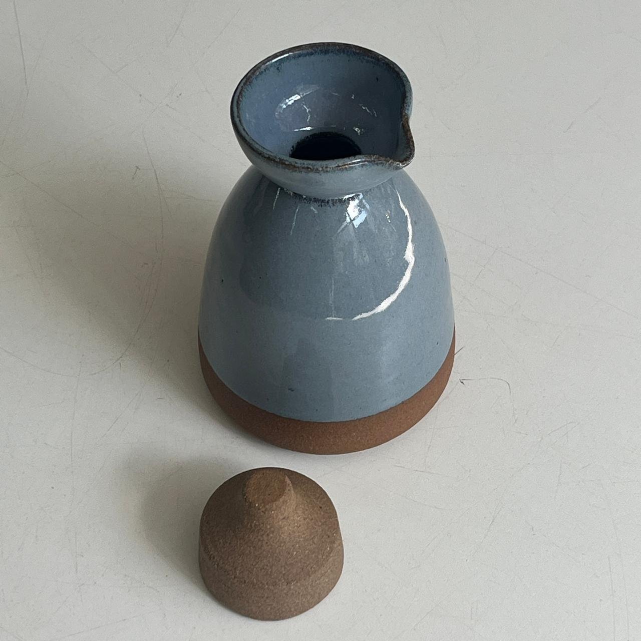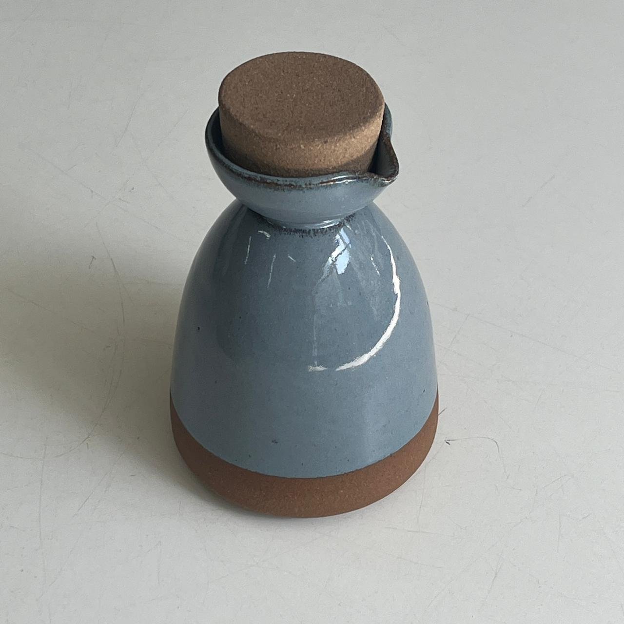 Garrafa de cerâmica com tampa de cerâmica, tonalidade azul oceano.
