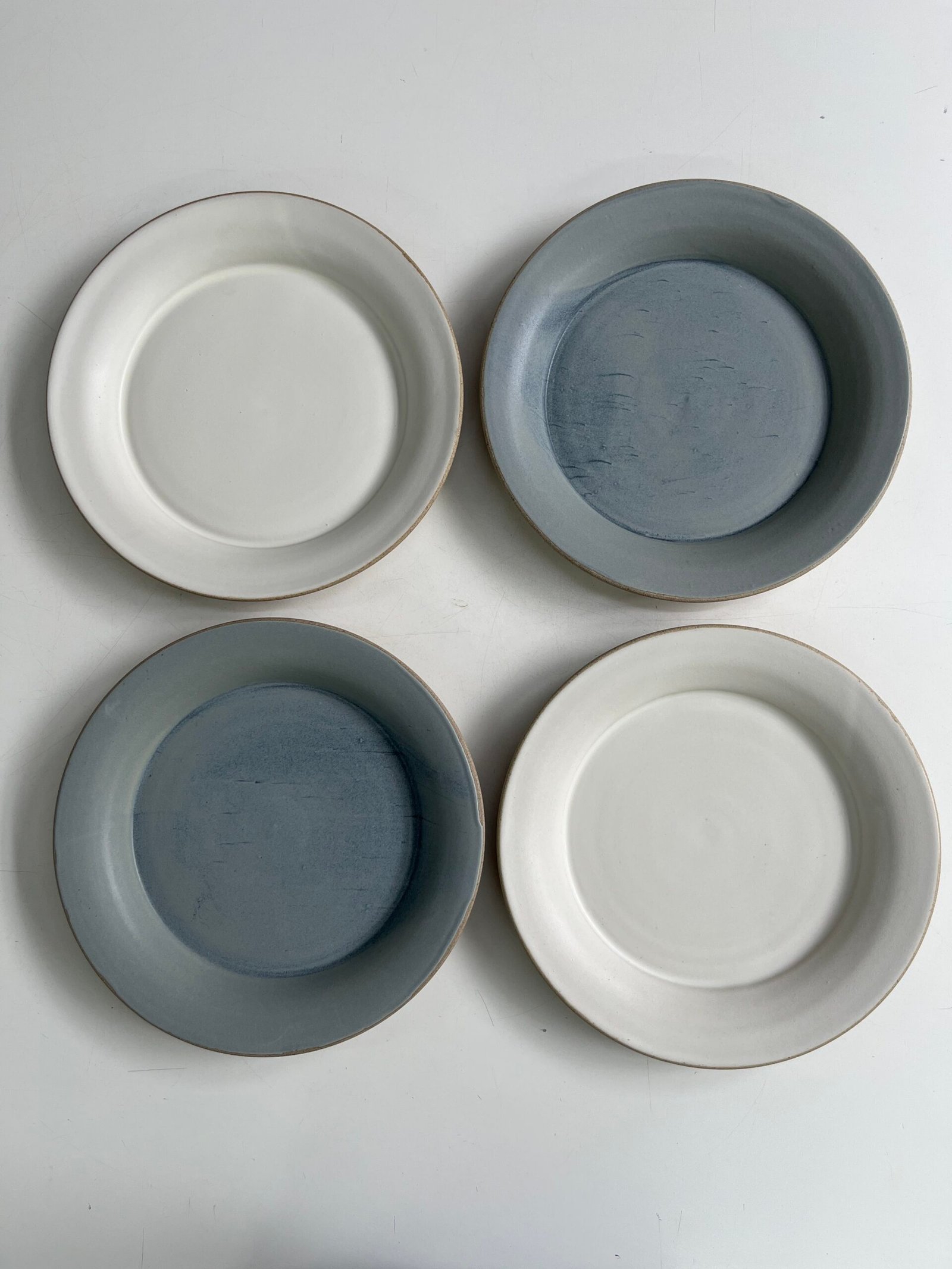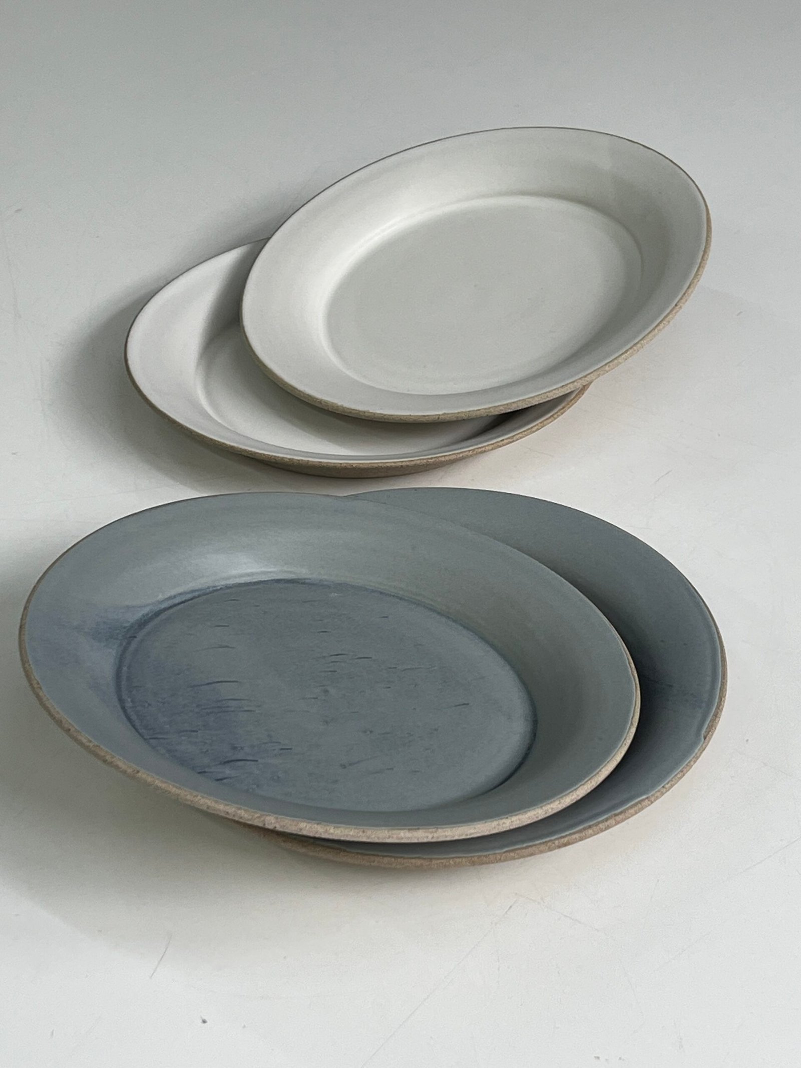 Peças esmaltadas na tonalidade cinza azulado fosco.